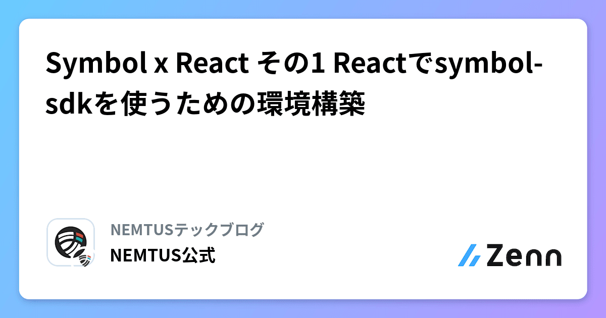 Symbol × Reactについてのサンプルコードと解説「Reactでsymbol-sdkを使うための環境構築」を公開しました。